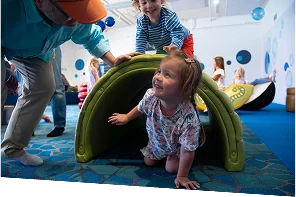 Bay Area–inspired, safe play for toddlers 42” and under—climb ramps and slides in the Forest Room and feel the Bay Room’s waterbed.